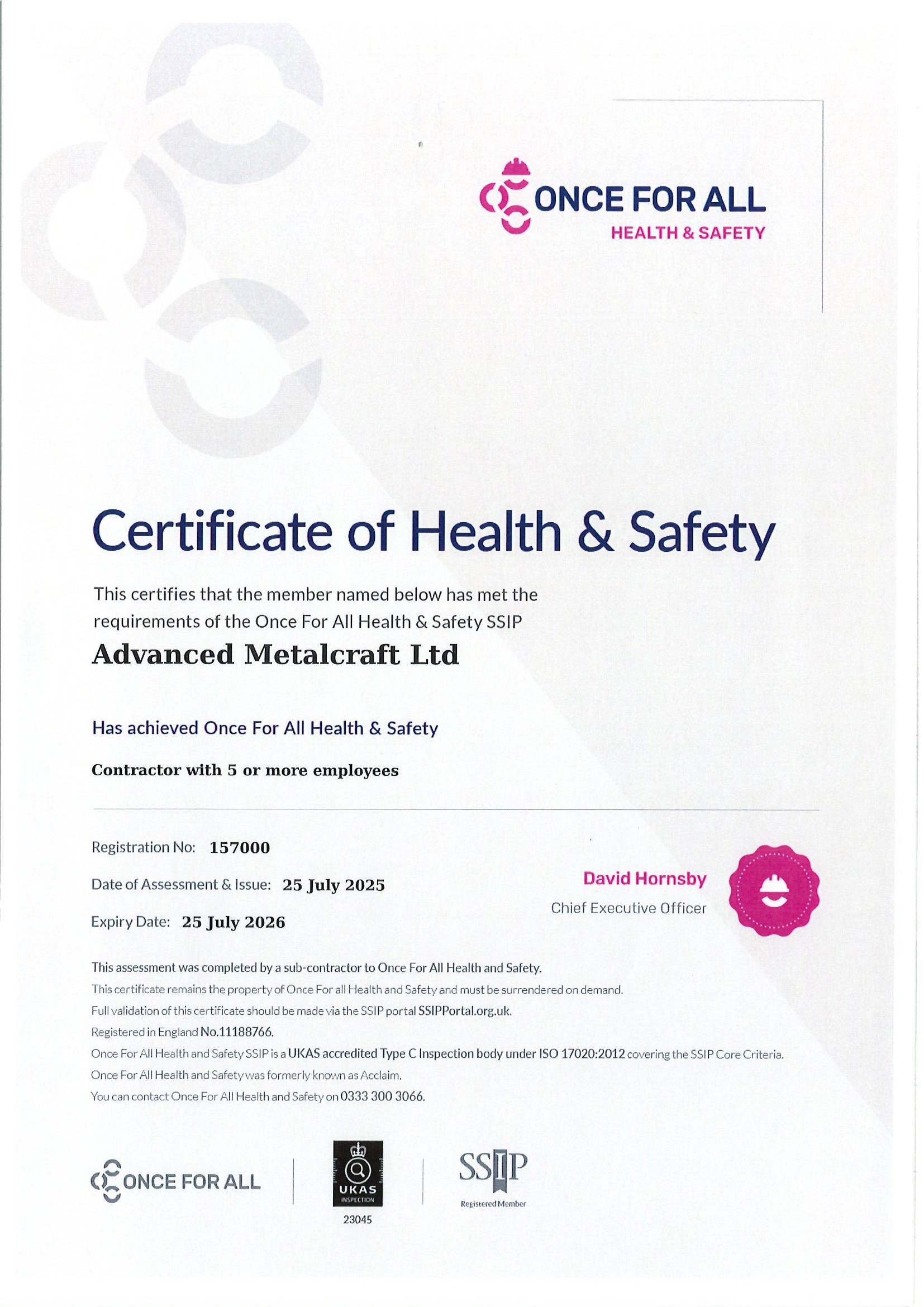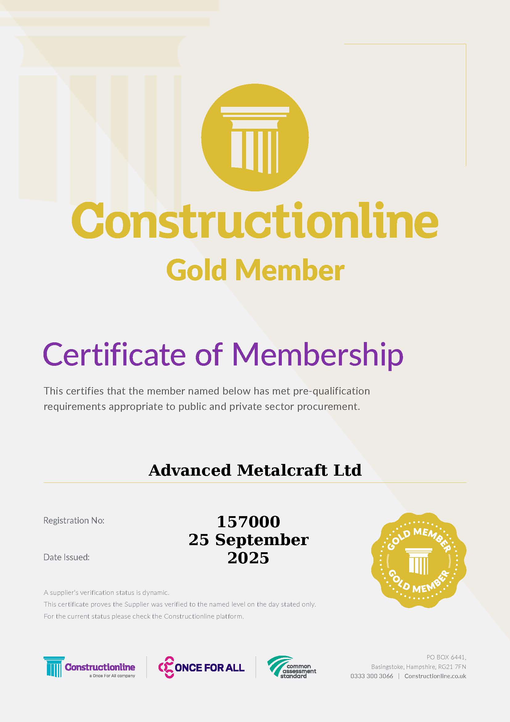 We operate a quality management system which satisfies the requirements of BS EN ISO 9001:2015 (UKAS) against which we are subject to external audits by Steel Construction Certification Scheme (SCCS).